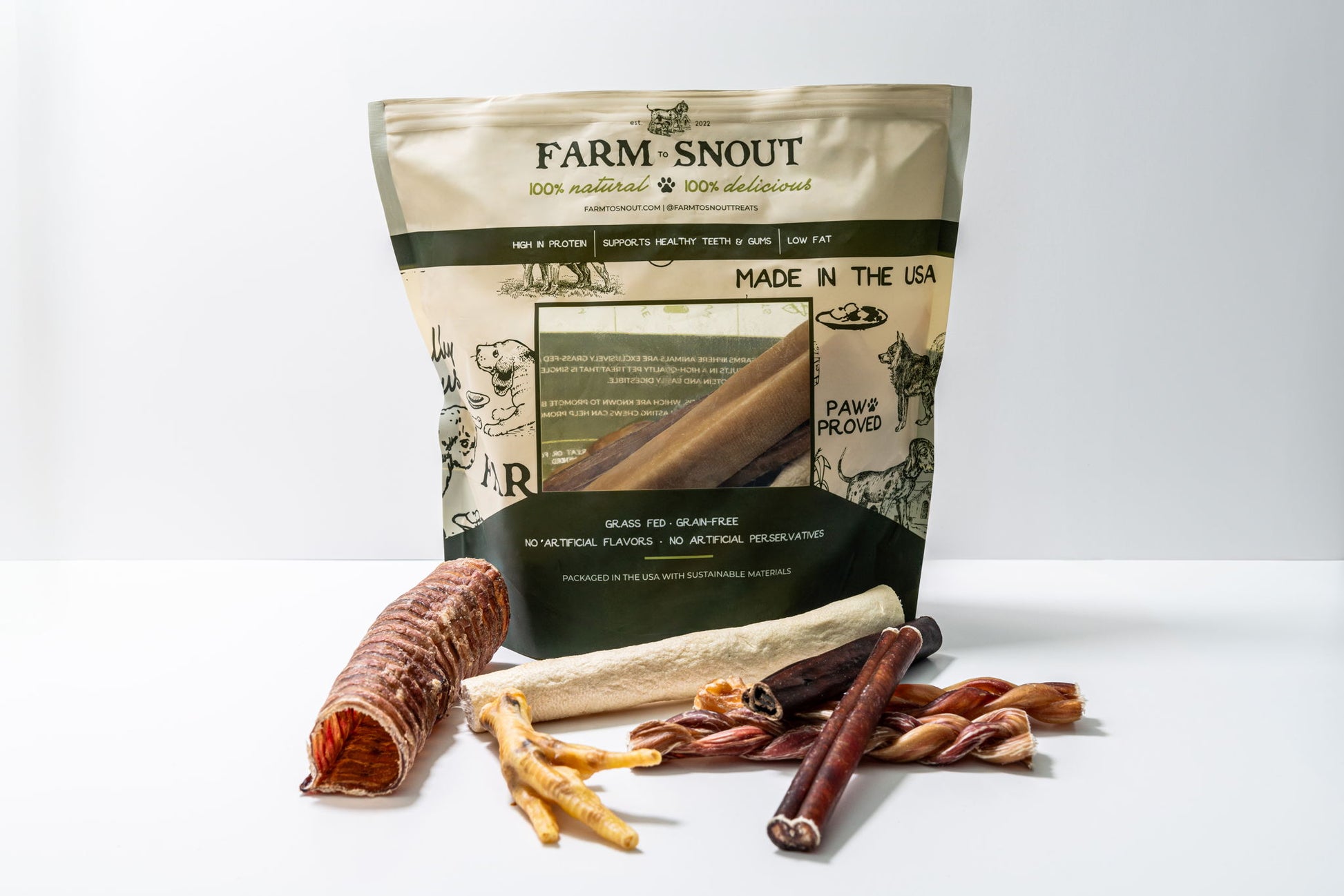 The Woof Pack is our monthly subscription service where you will receive a variety of Farm to Snout treats and chews that will change each month.